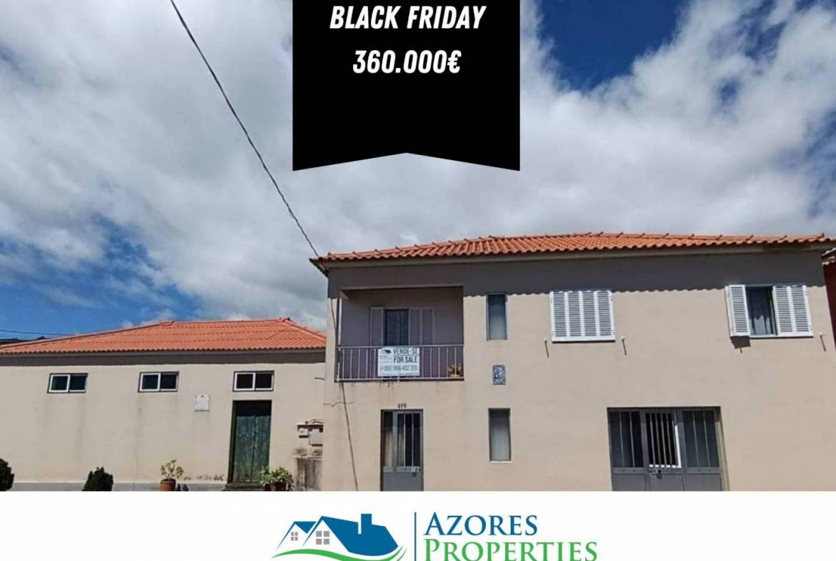 Temos o prazer de lhe apresentar esta excecional casa de família com moagem e terreno perto do aeroporto da Horta em Castelo Branco, Ilha do Faial, Açores.