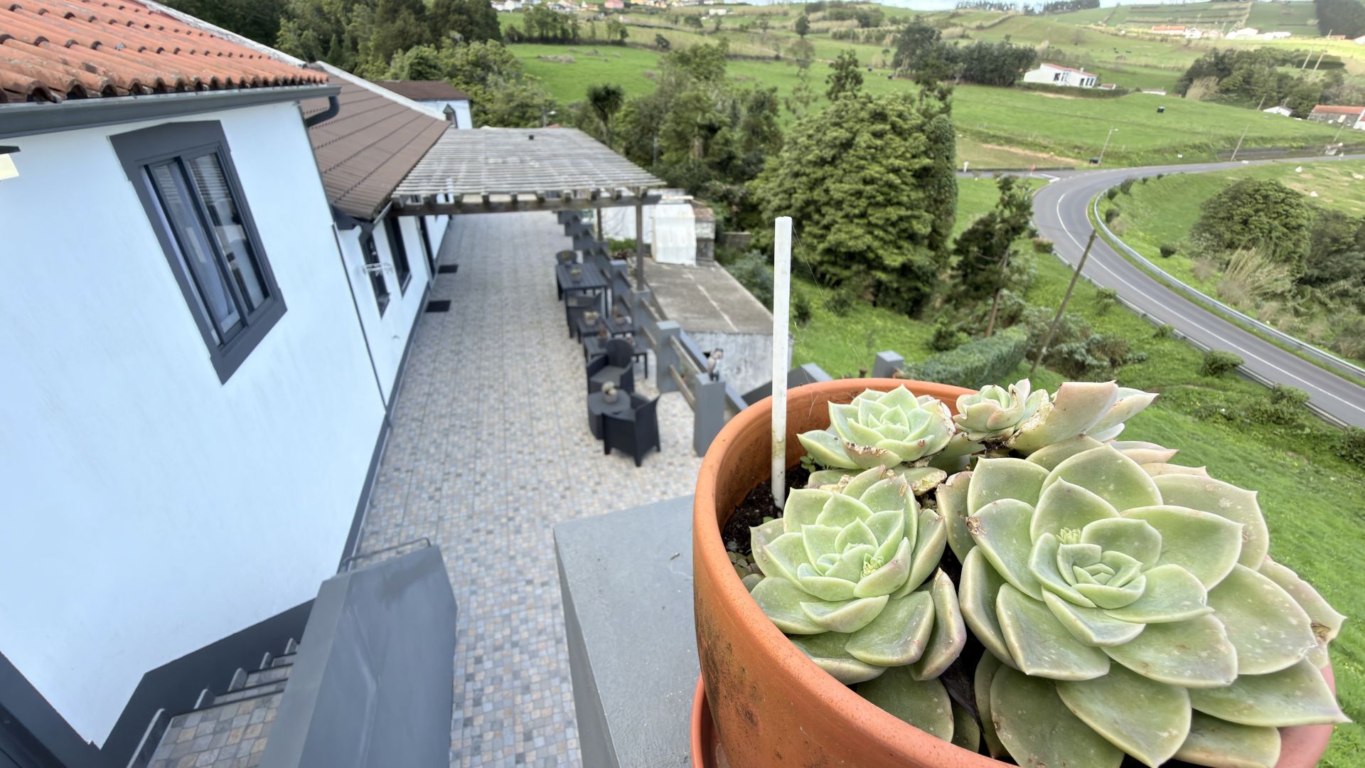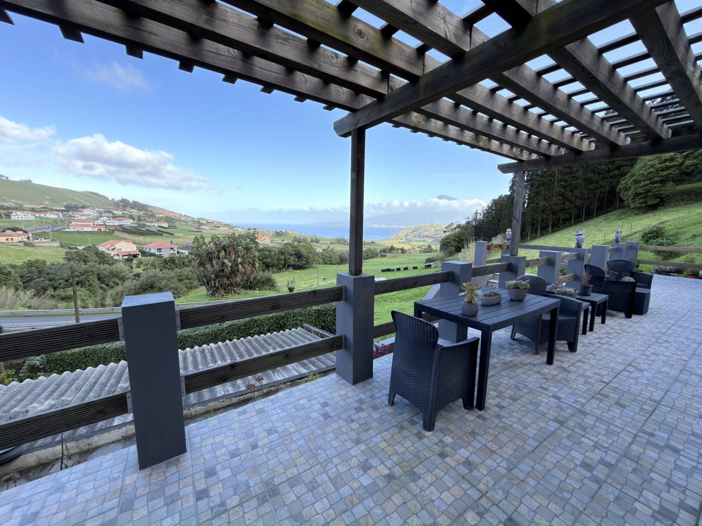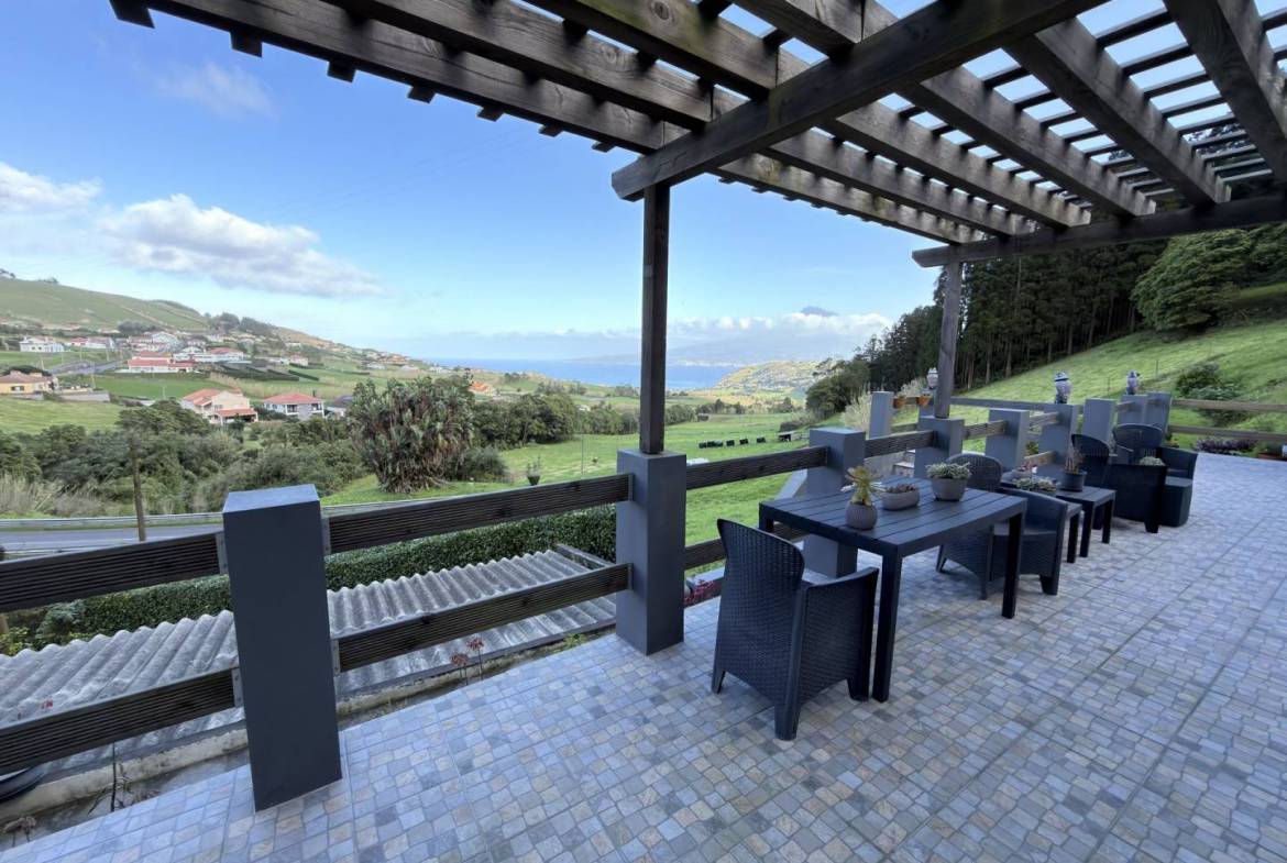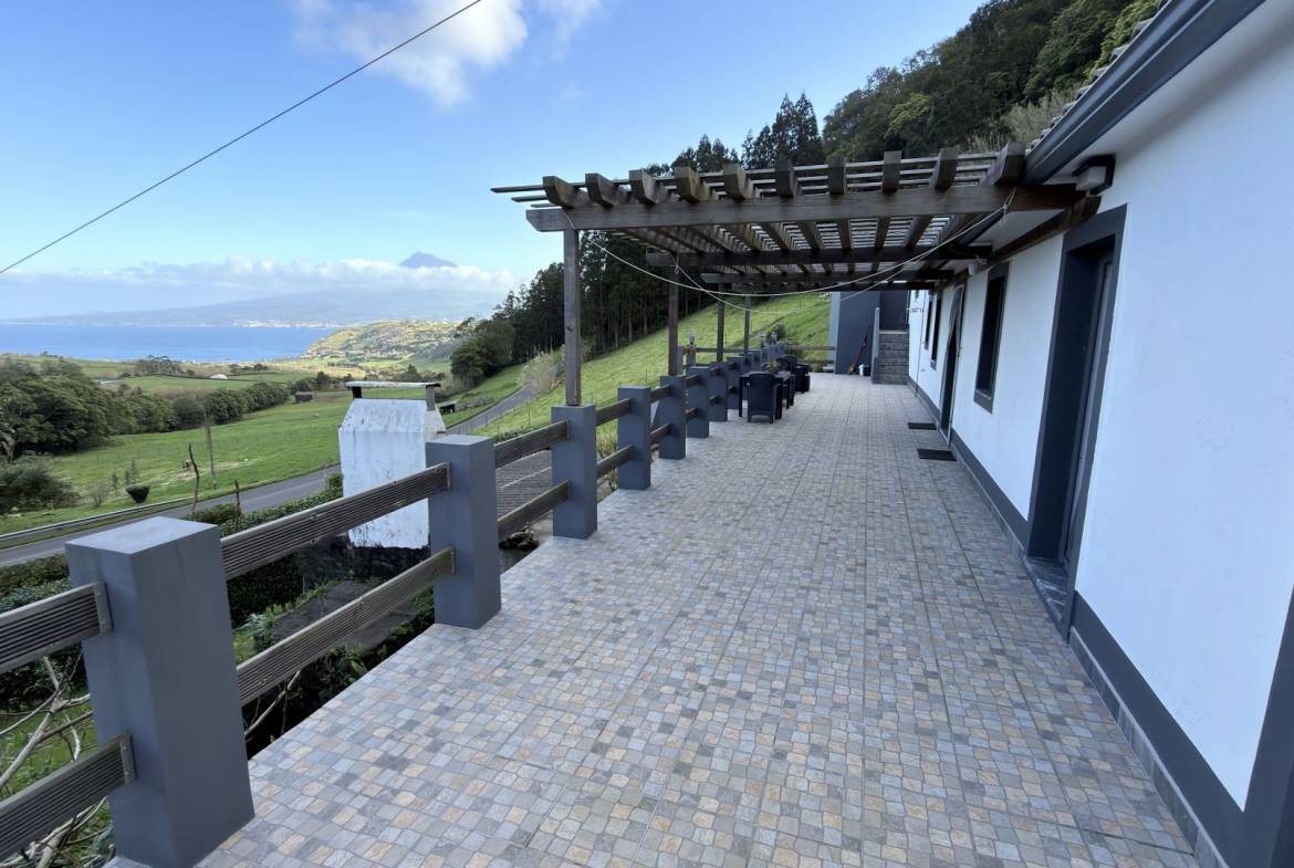 - Vistas panorâmicas sobre o oceano: Um terraço amplo e elevado tem vista para o Atlântico, oferecendo lugares na primeira fila para um nascer do sol de cortar a respiração e a silhueta icónica da Ilha do Pico.