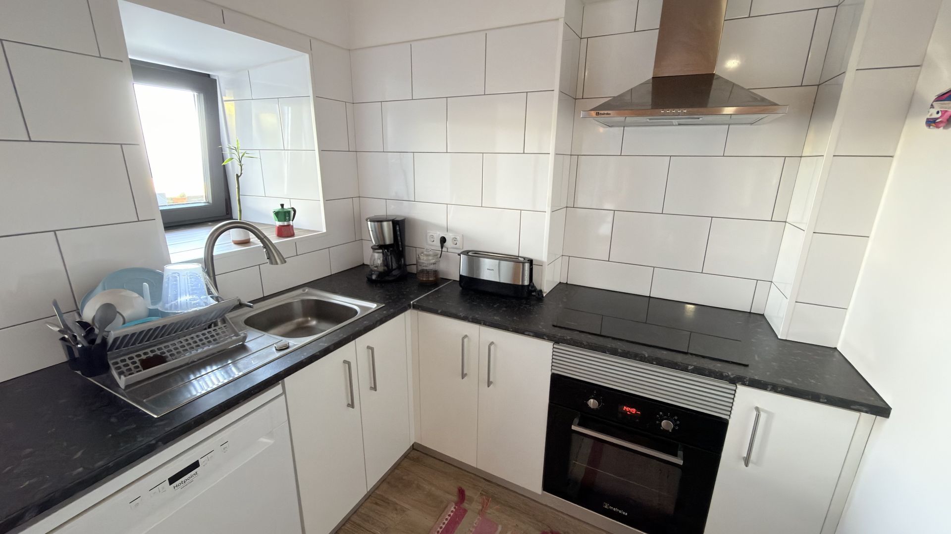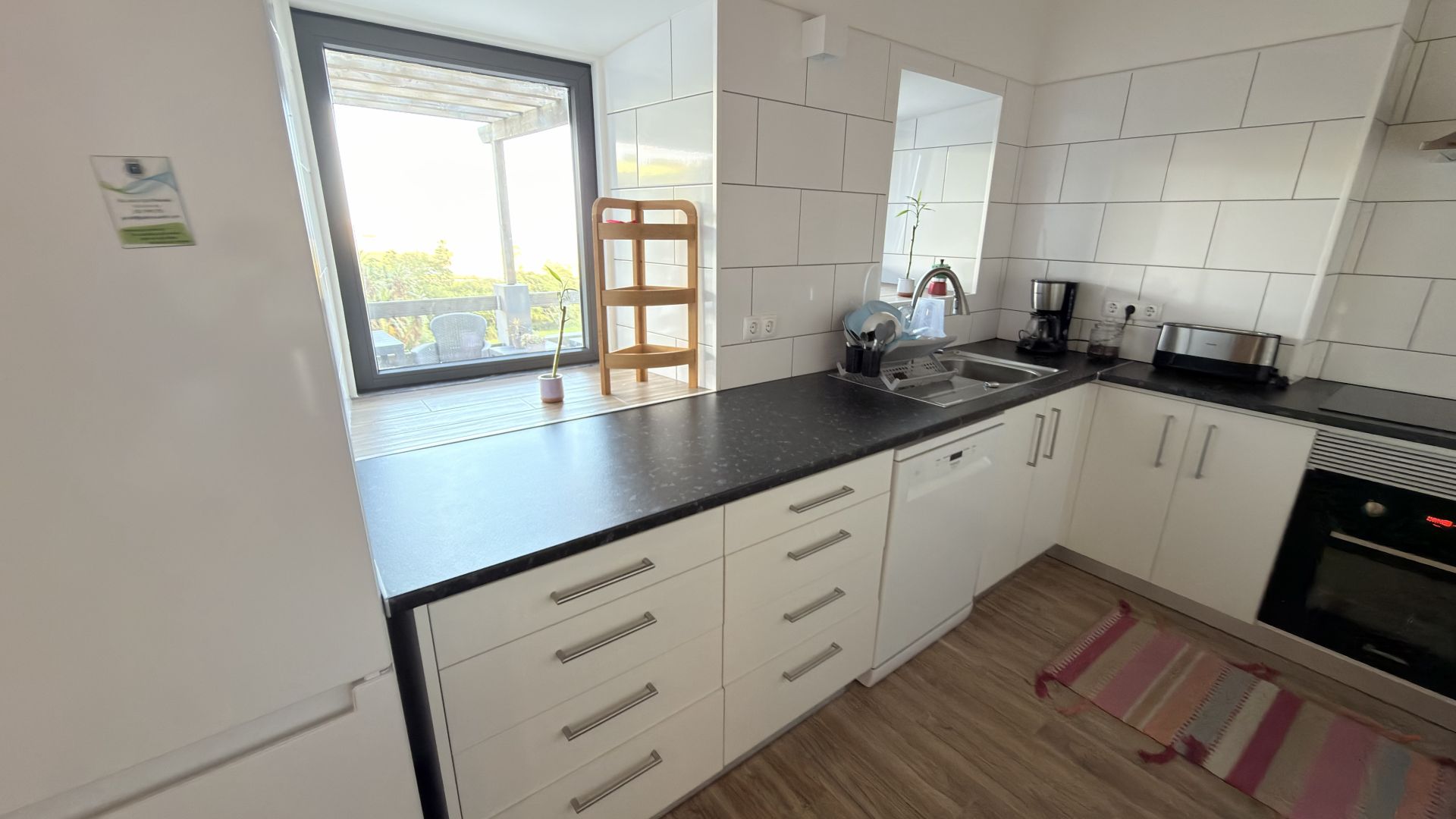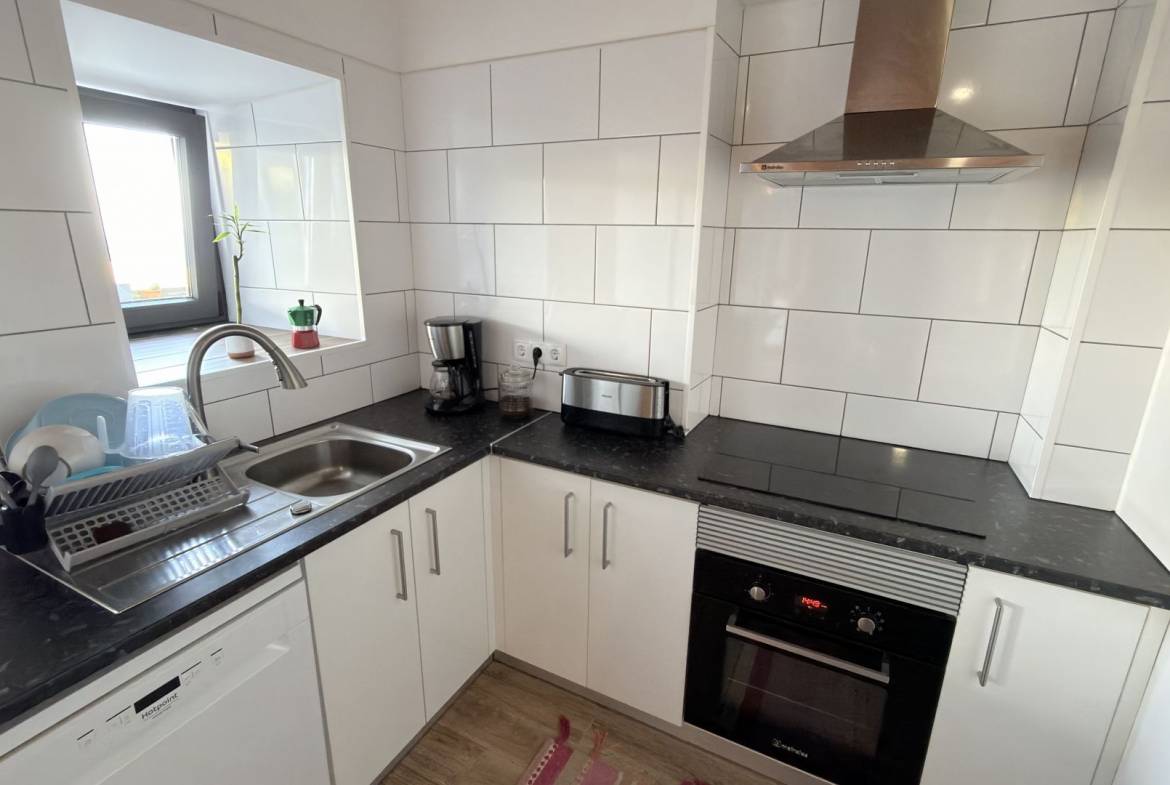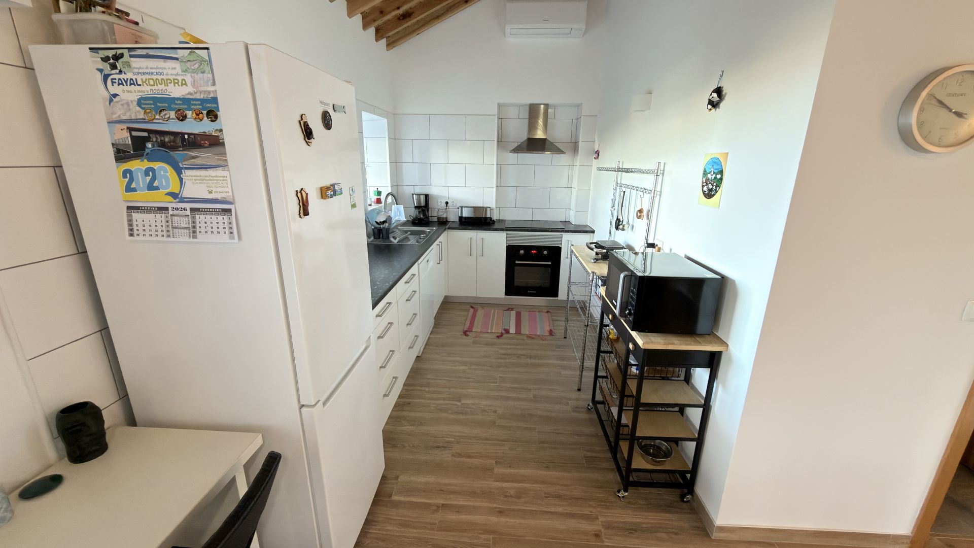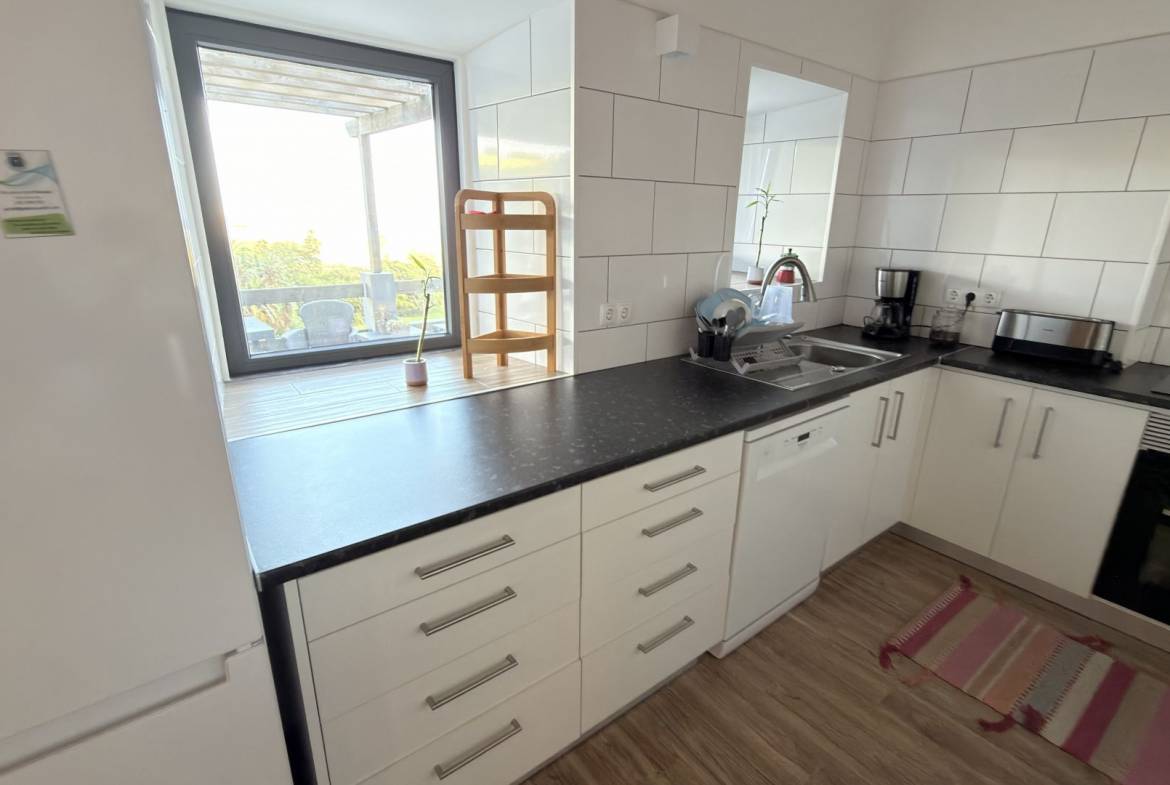 - Uma cozinha moderna e totalmente equipada com electrodomésticos elegantes.