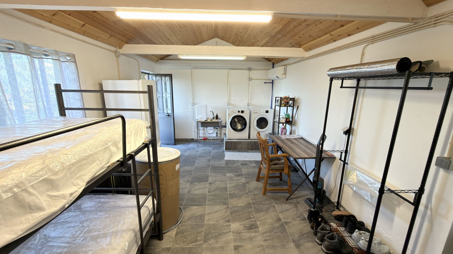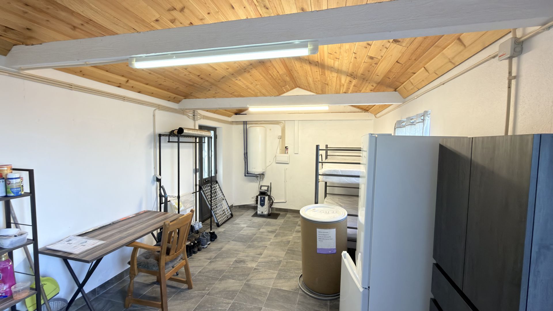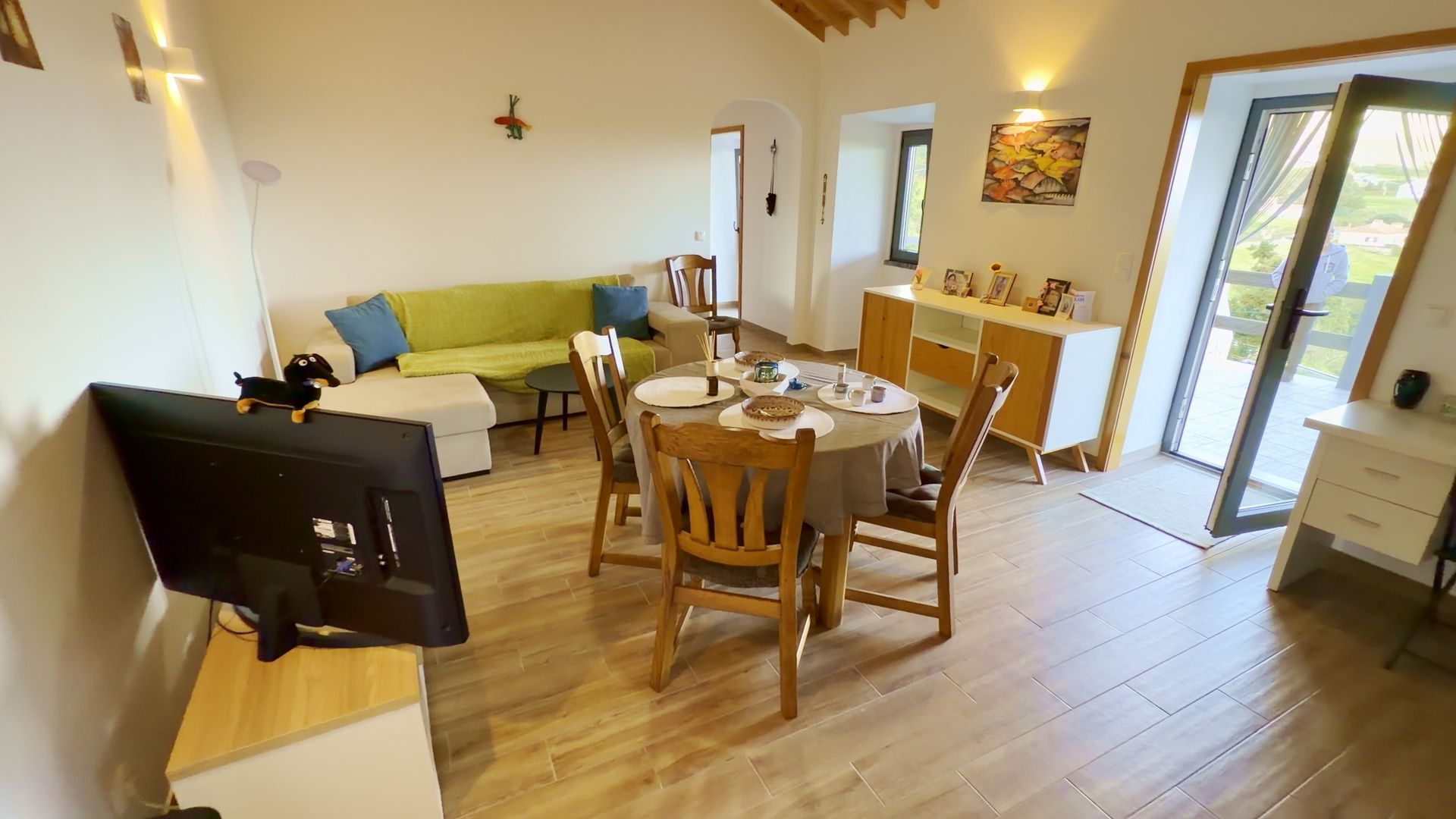 - Vida moderna em plano aberto: Uma cozinha e uma sala de estar luminosas e arejadas com tectos abobadados em madeira, perfeitas para receber ou relaxar.