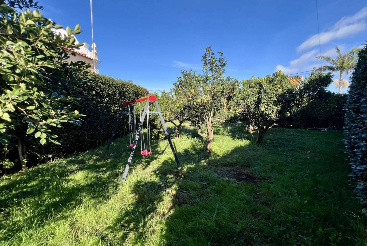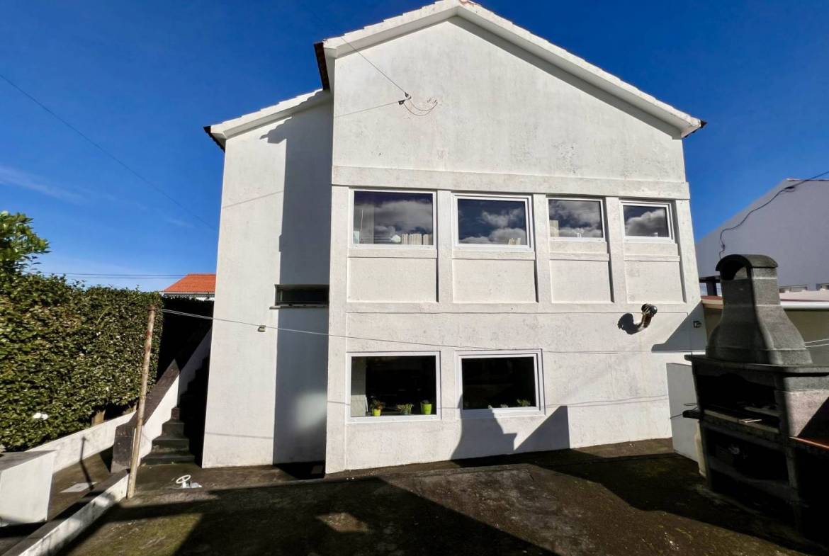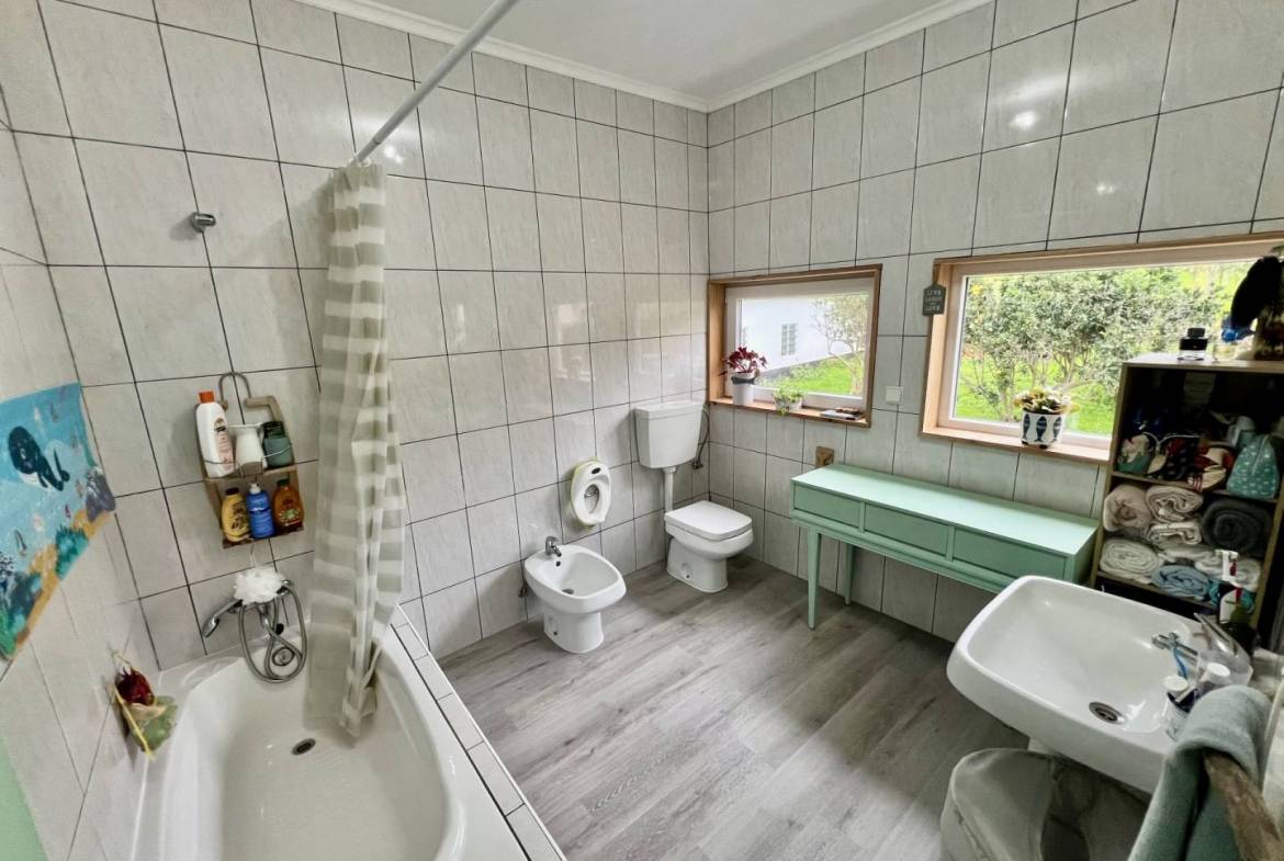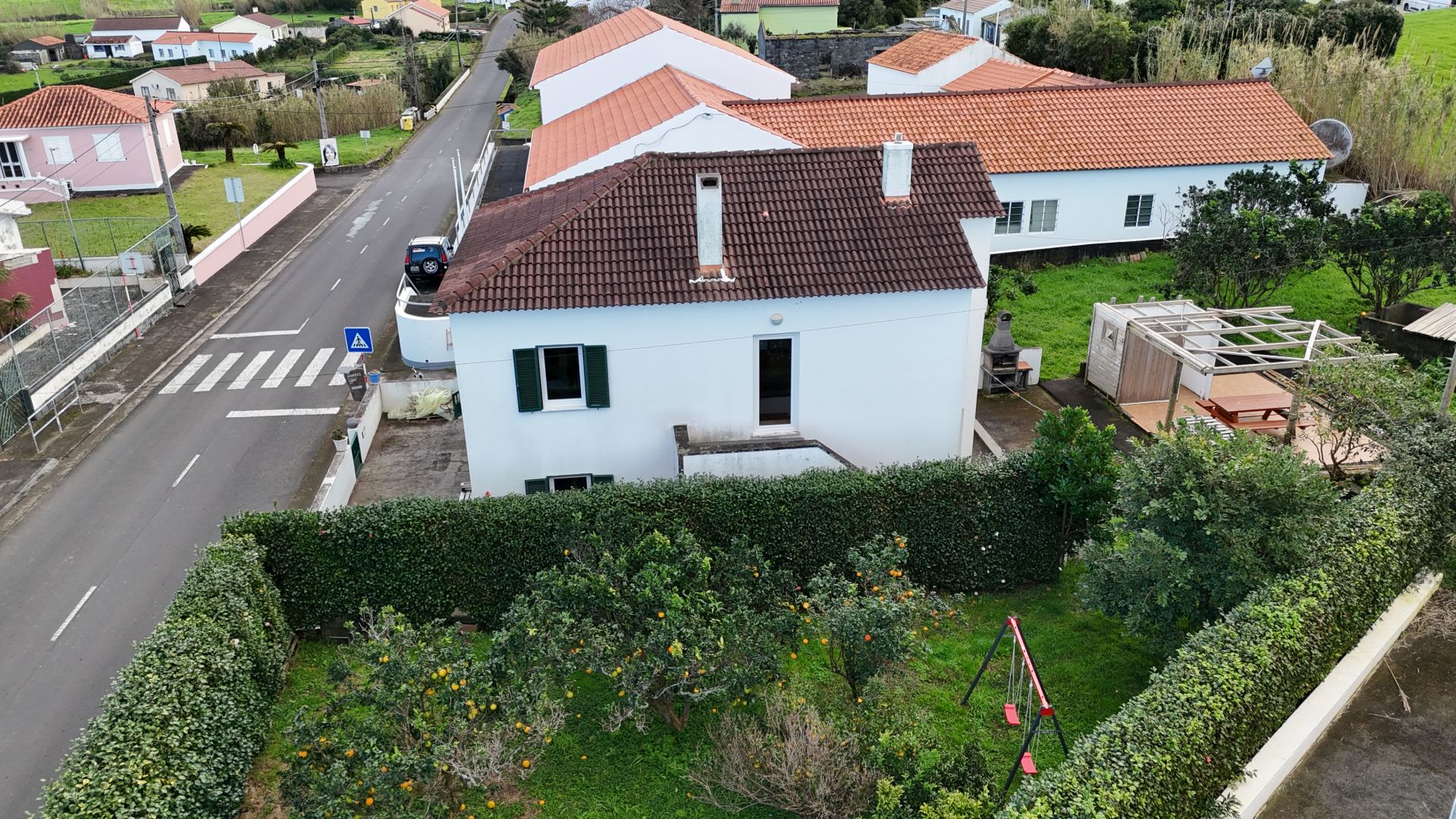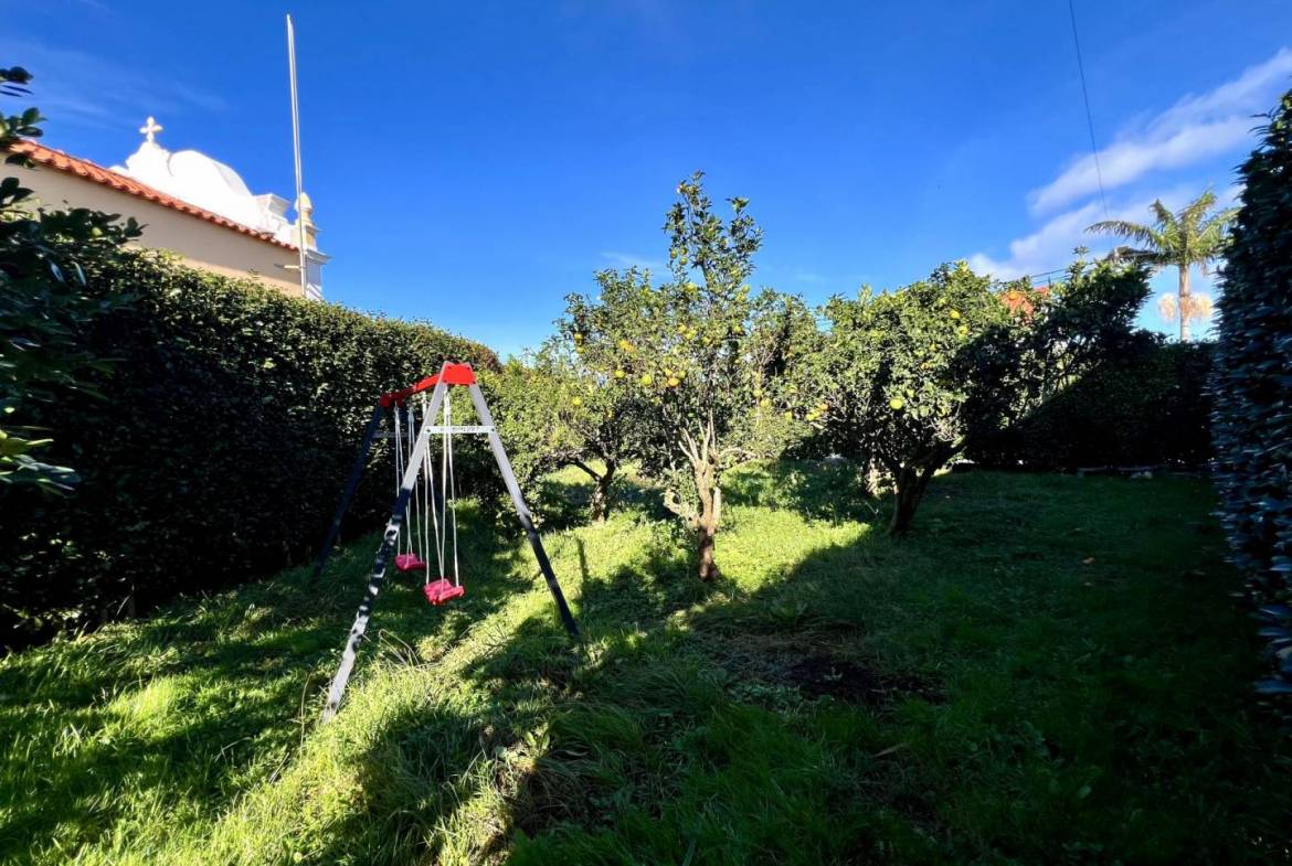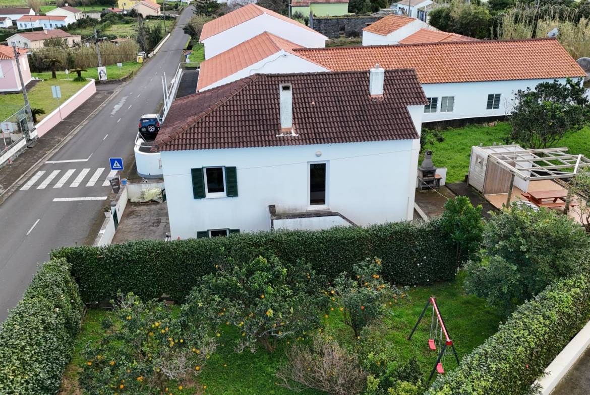 No exterior, tens um pátio e uma garagem. Nas traseiras, há um belo jardim bem cuidado, separado em dois sectores. No primeiro, terás um tradicional curral de curral de porcos e um pequeno jardim para as tuas verduras e uma casa de banho. O segundo sector é utilizado como pomar de citrinos, mas terá ainda espaço para novos projectos.