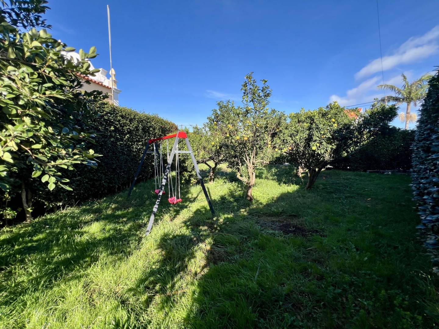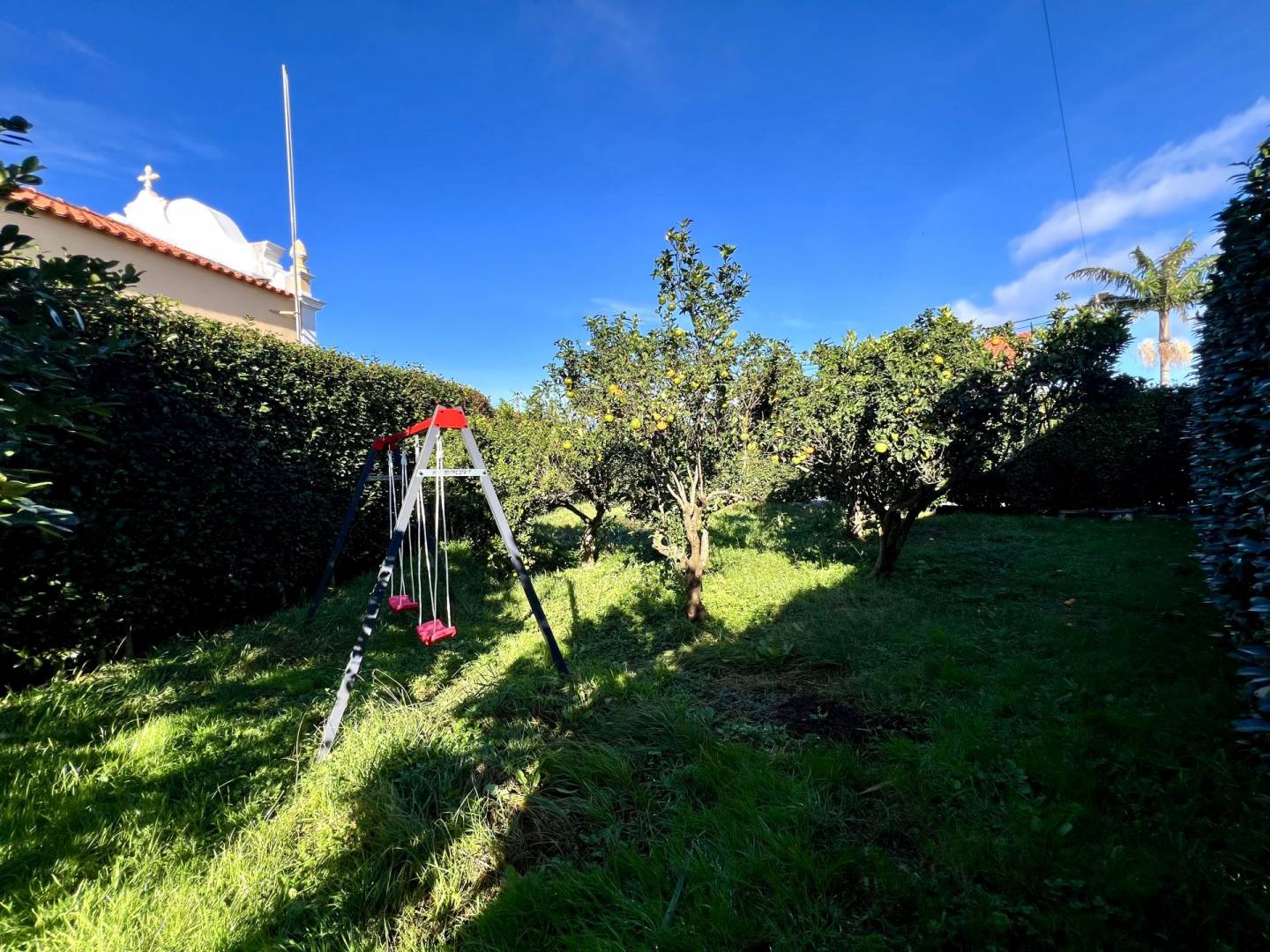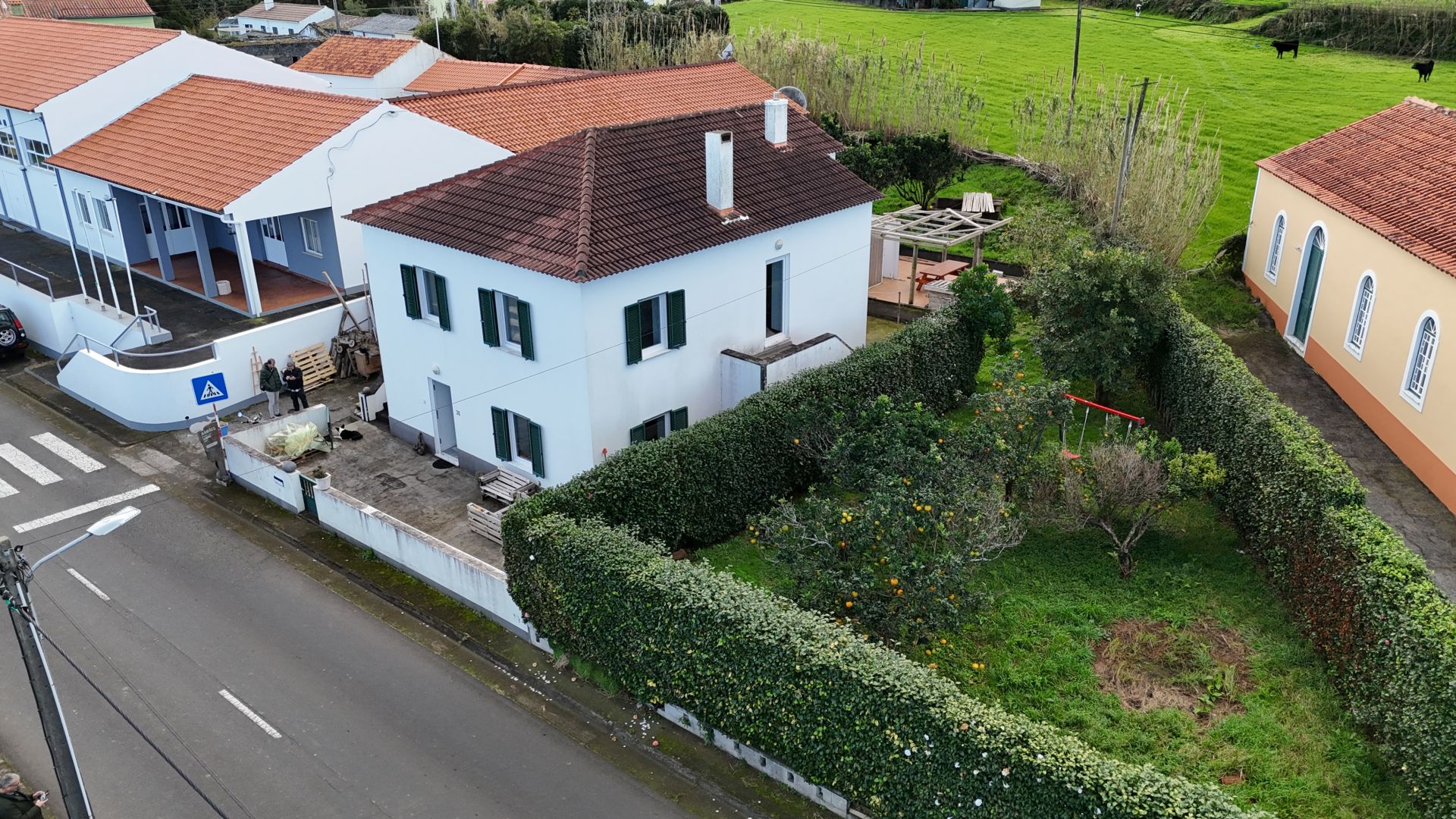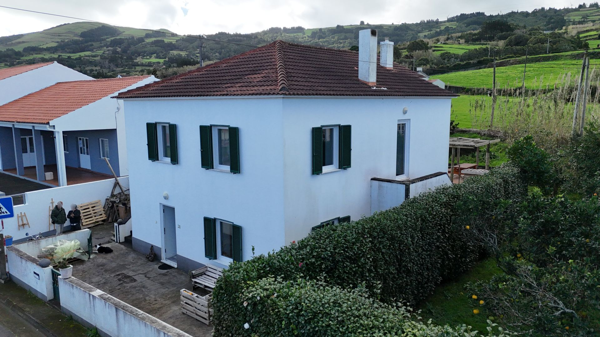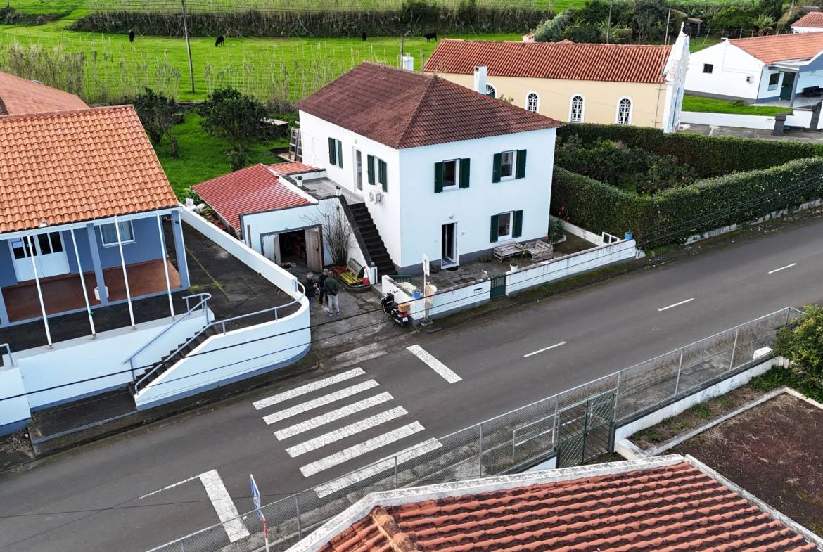 No exterior, tens um pátio e uma garagem. Nas traseiras, há um belo jardim bem cuidado, separado em dois sectores. No primeiro, terás um tradicional curral de curral de porcos e um pequeno jardim para as tuas verduras e uma casa de banho. O segundo sector é utilizado como pomar de citrinos, mas terá ainda espaço para novos projectos.