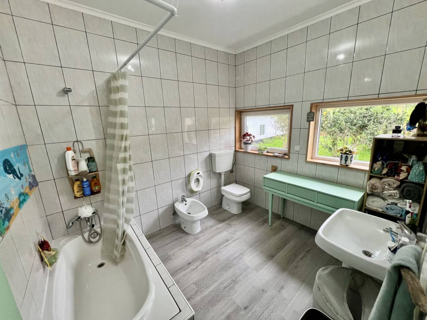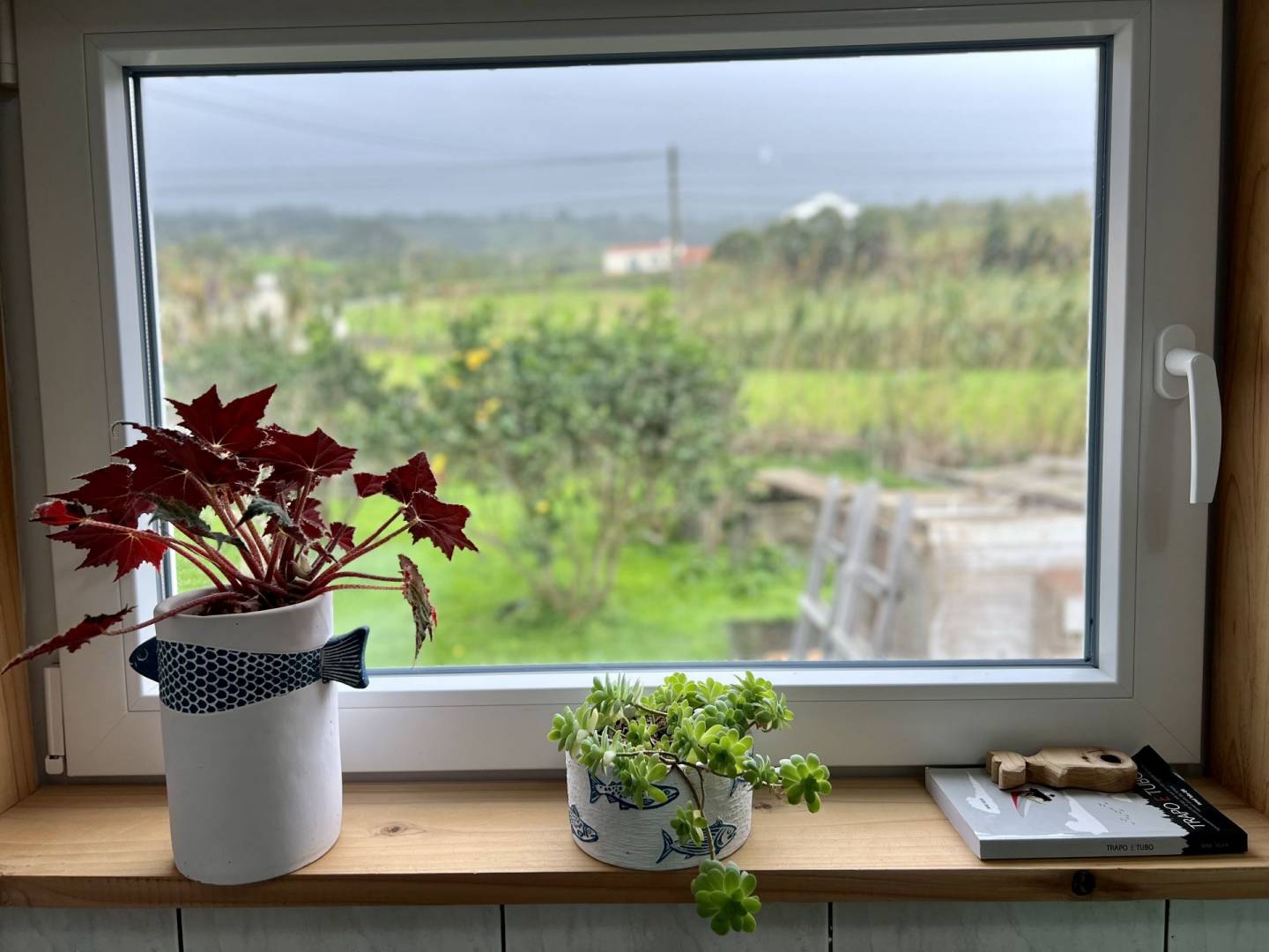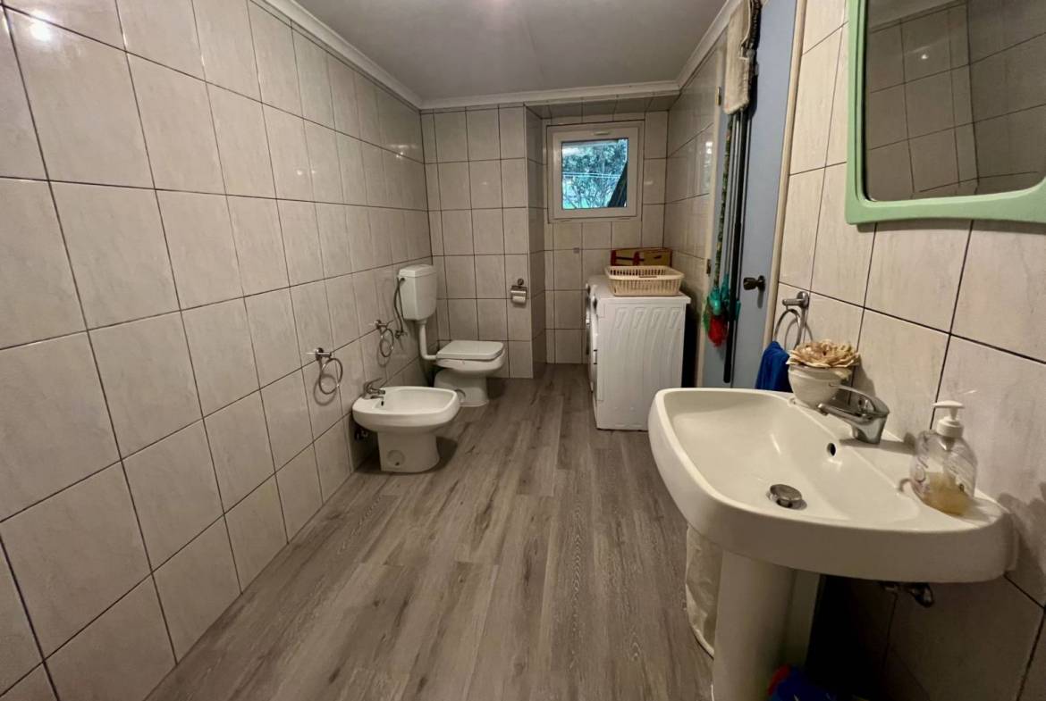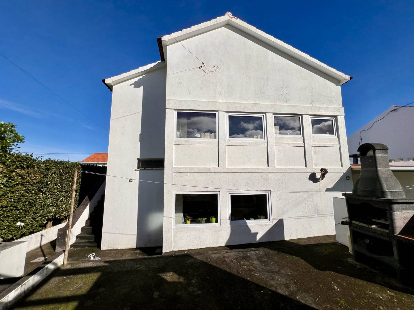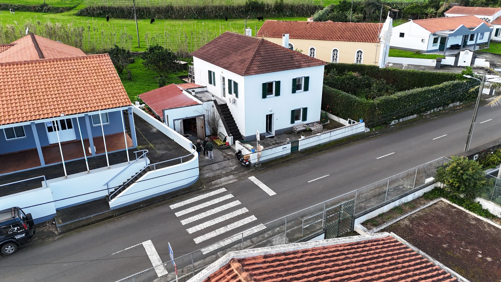 No exterior, tens um pátio e uma garagem. Nas traseiras, há um belo jardim bem cuidado, separado em dois sectores. No primeiro, terás um tradicional curral de curral de porcos e um pequeno jardim para as tuas verduras e uma casa de banho. O segundo sector é utilizado como pomar de citrinos, mas terá ainda espaço para novos projectos.