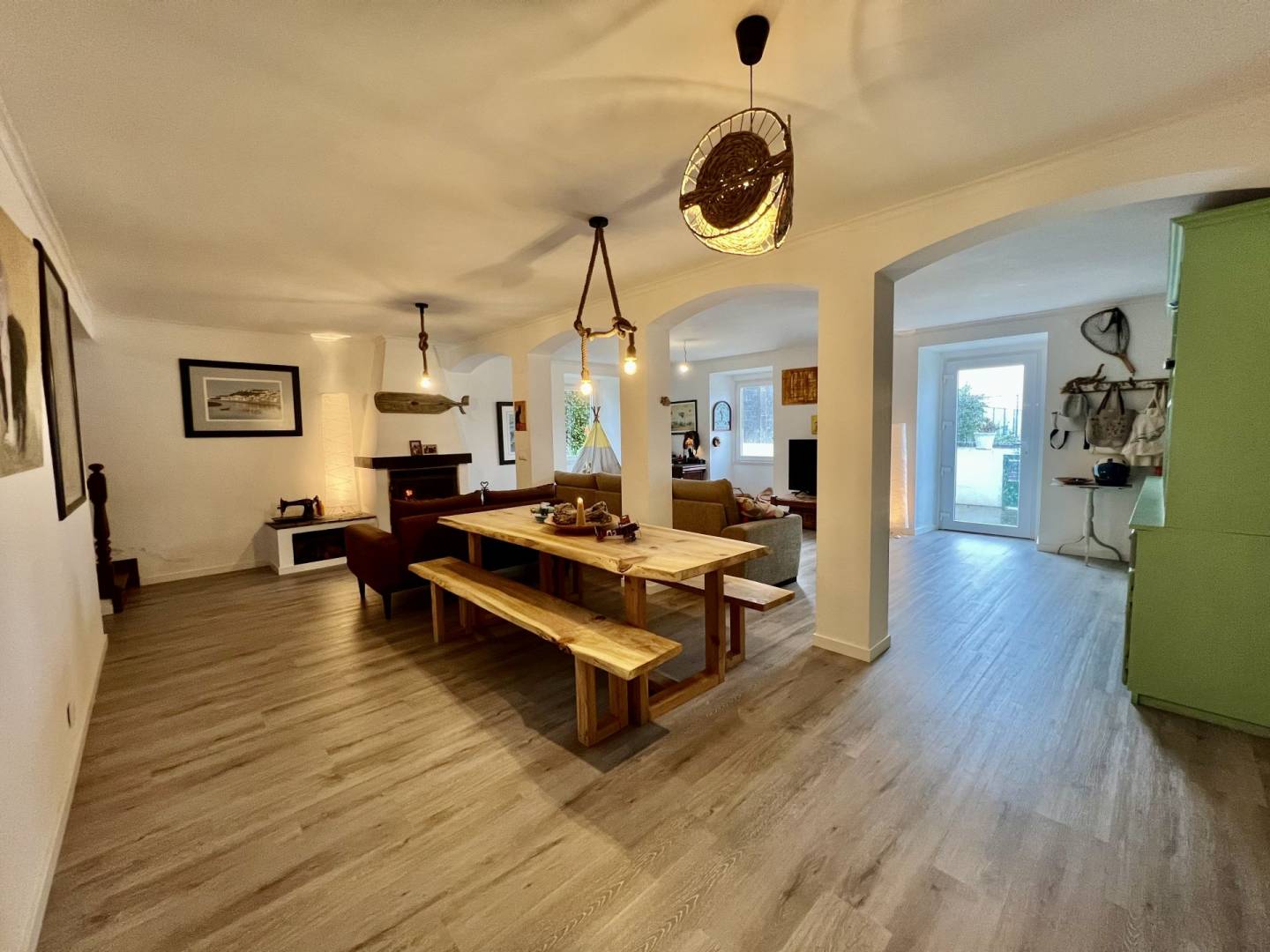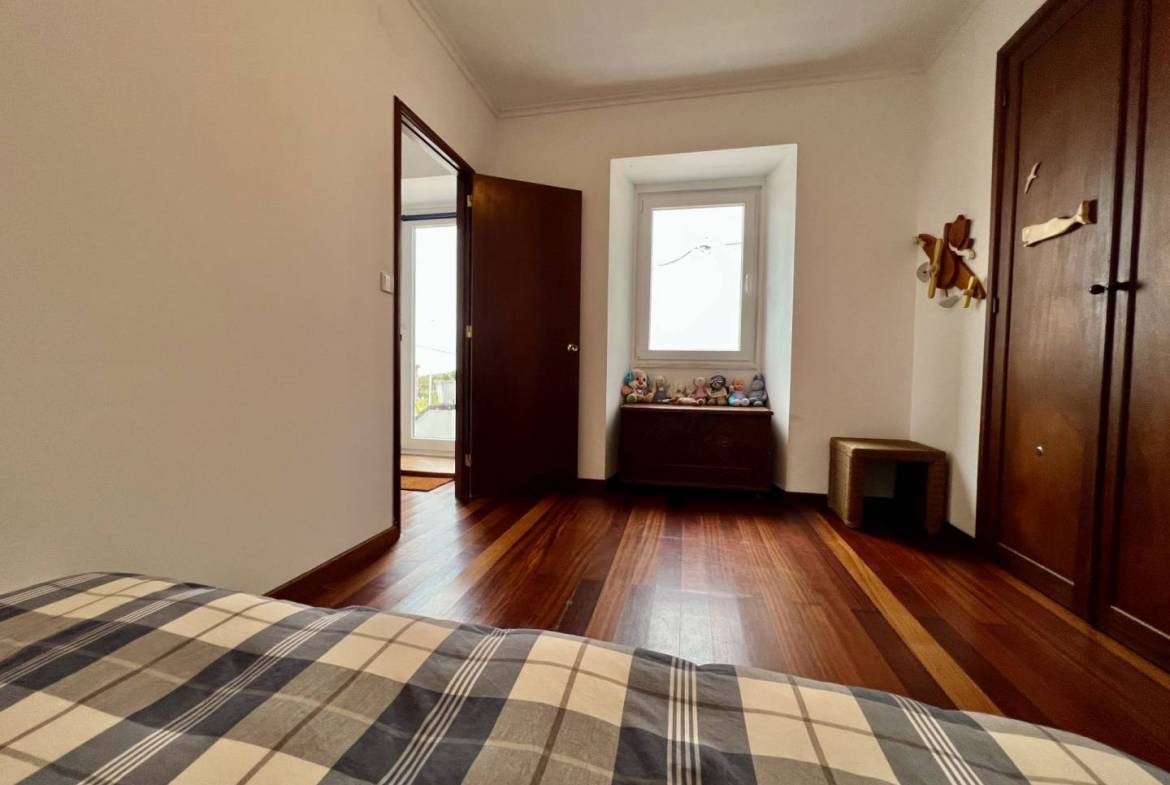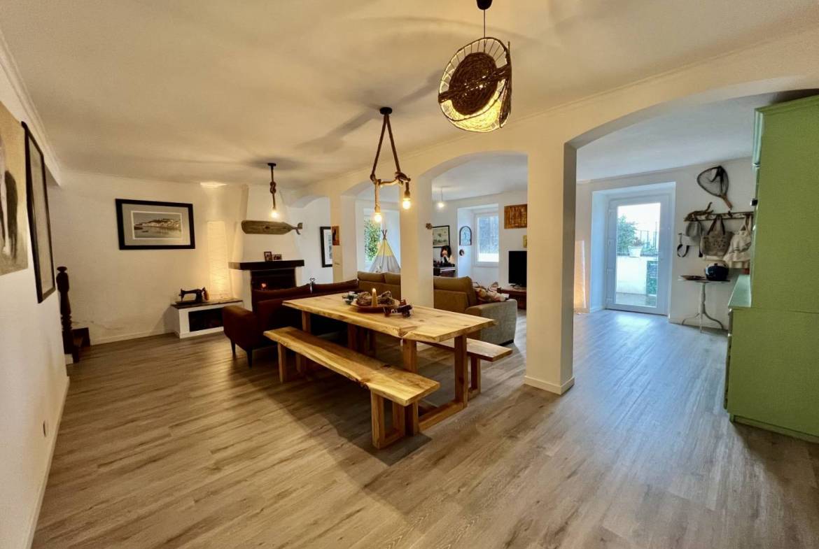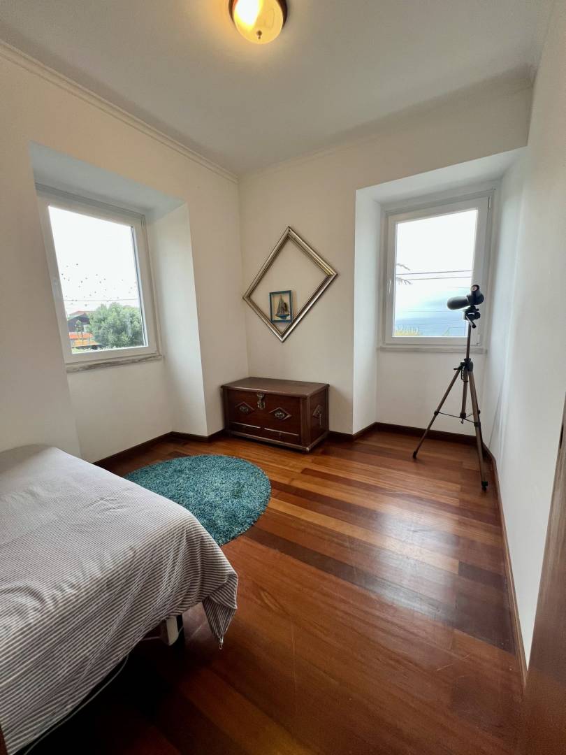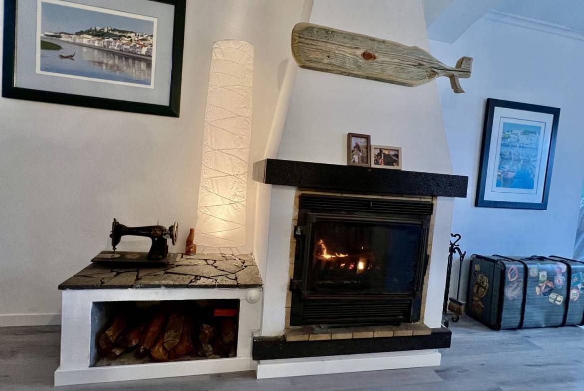 “A Casa da Baleia” tem uma área de 215m2 dividida em dois pisos. No rés do chão, temos uma ampla sala de estar e jantar em Open Space, uma casa de banho e uma cozinha espaçosa e totalmente equipada. Ainda nesta divisão, temos uma lareira totalmente funcional que proporcionará um ambiente muito agradável e acolhedor nos dias frios, perfeito para momentos em família. O acesso ao primeiro andar é feito através de uma bonita escadaria de madeira que nos leva a uma sala de leitura, uma casa de banho e um amplo corredor que dá acesso a três quartos. O chão é de madeira e toda a casa, em ambos os pisos, tem grandes janelas e portas de PVC com vidros duplos, tornando impercetível o ruído exterior.