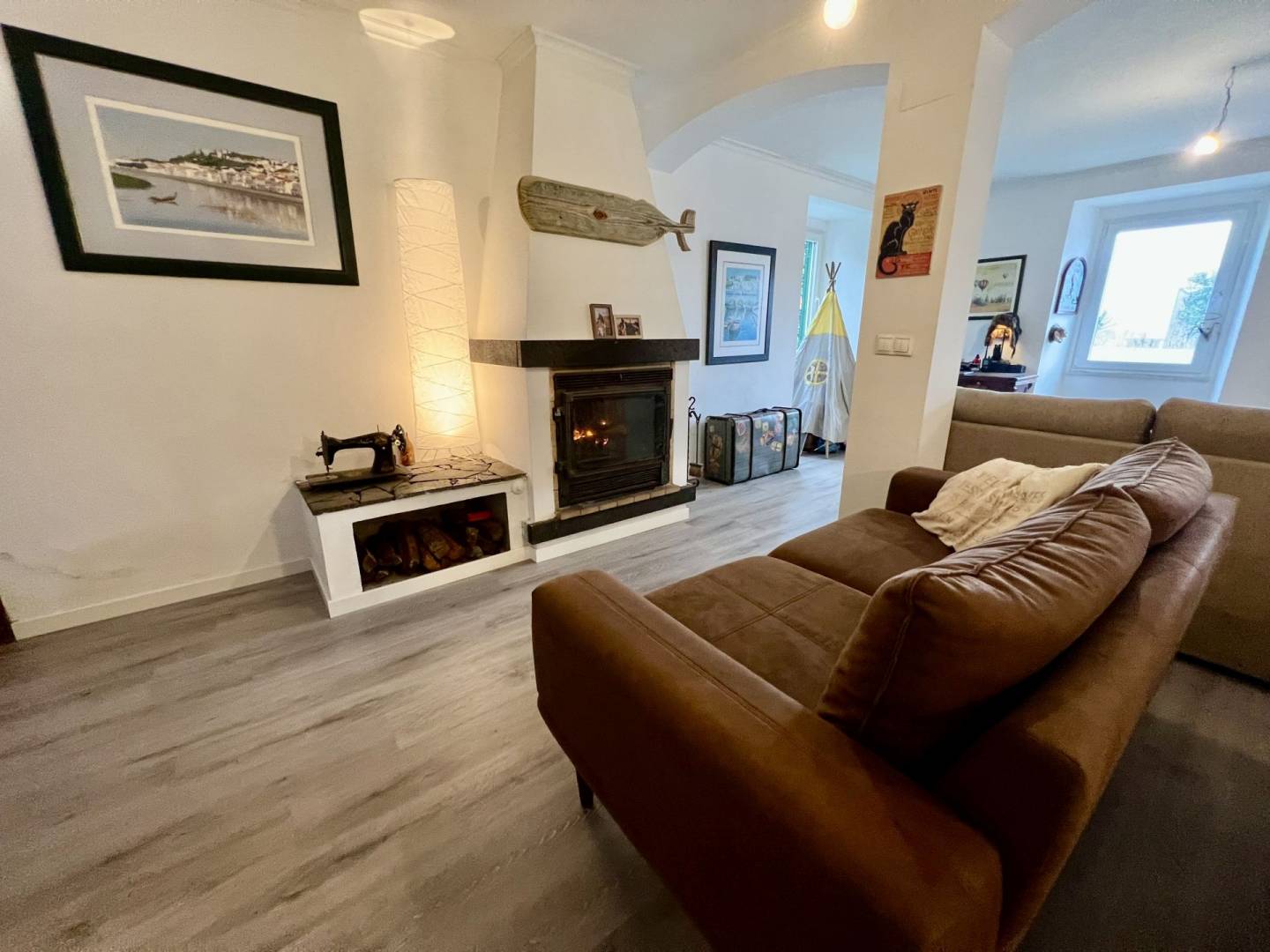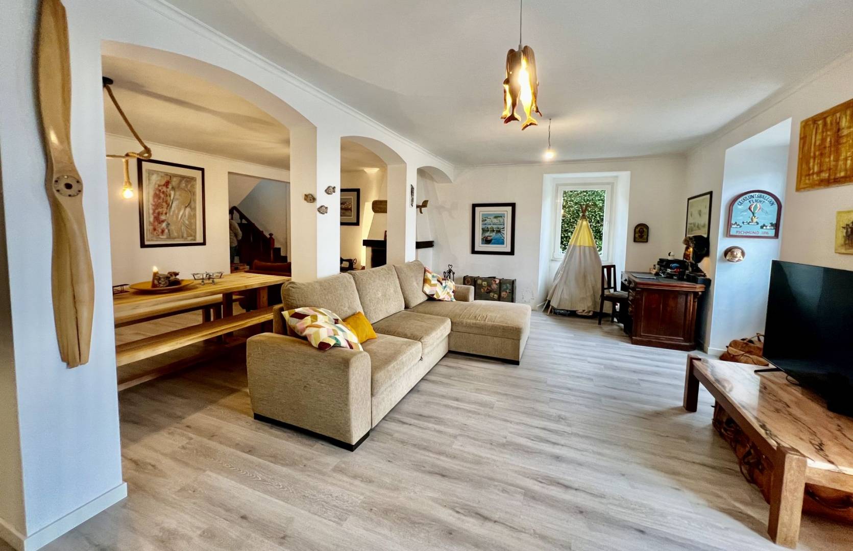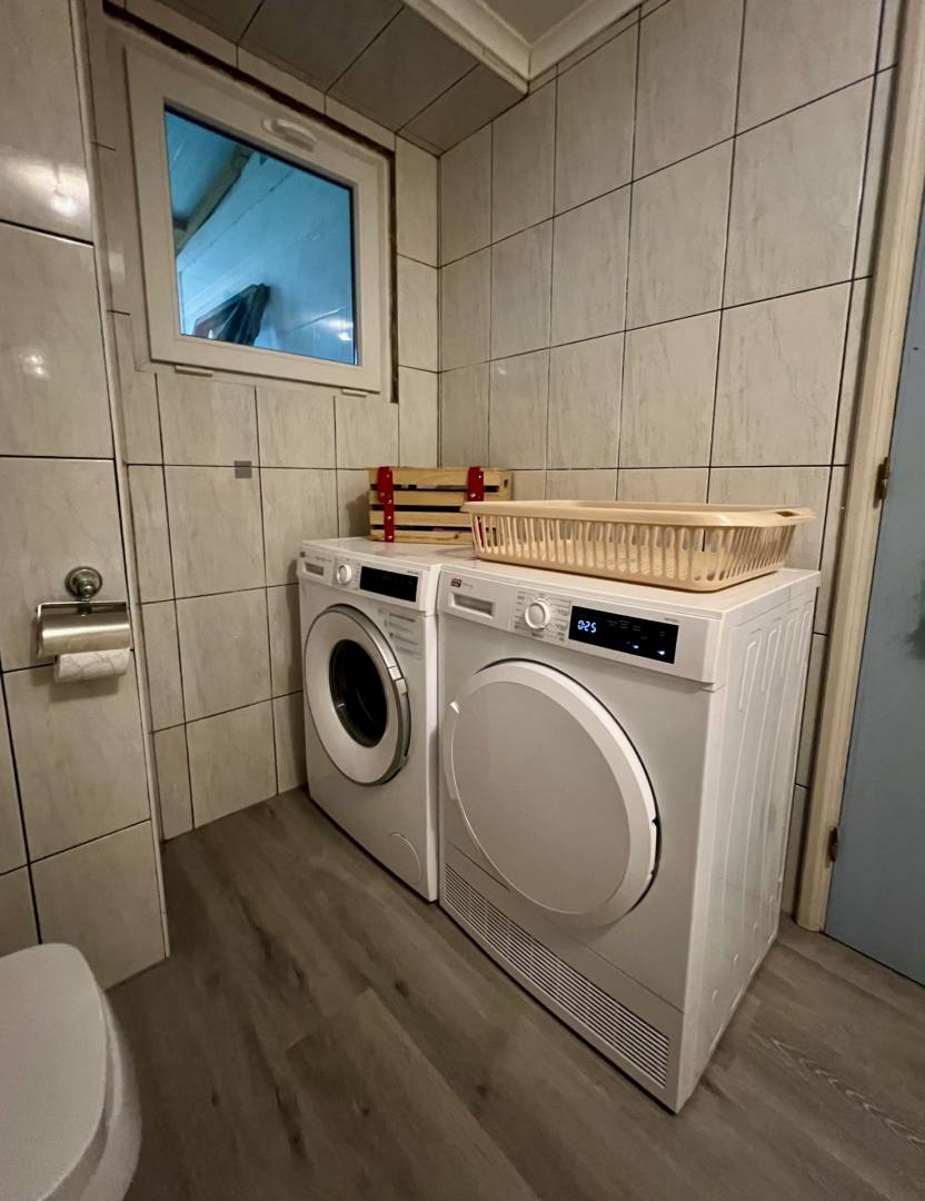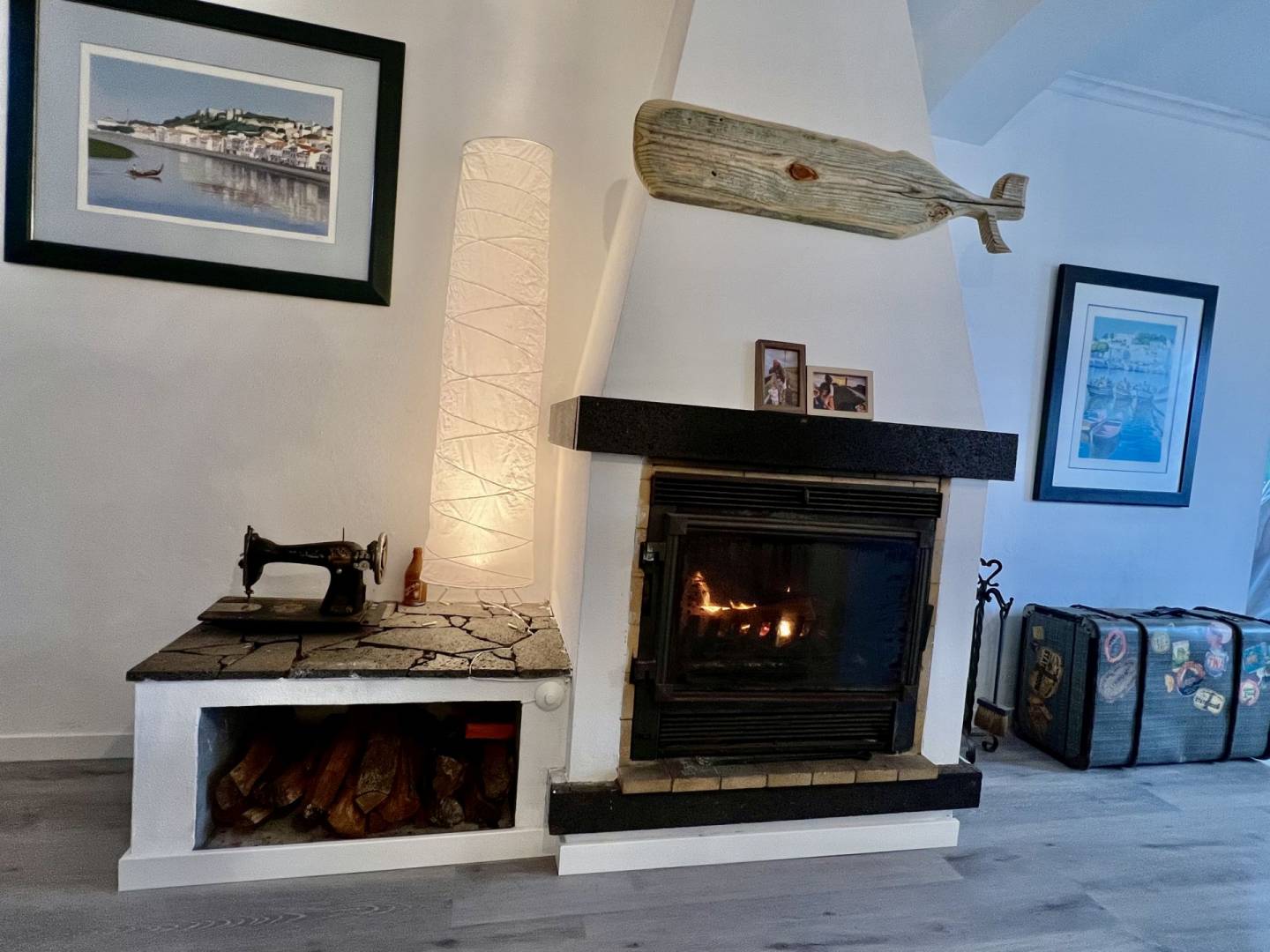 “A Casa da Baleia” tem uma área de 215m2 dividida em dois pisos. No rés do chão, temos uma ampla sala de estar e jantar em Open Space, uma casa de banho e uma cozinha espaçosa e totalmente equipada. Ainda nesta divisão, temos uma lareira totalmente funcional que proporcionará um ambiente muito agradável e acolhedor nos dias frios, perfeito para momentos em família. O acesso ao primeiro andar é feito através de uma bonita escadaria de madeira que nos leva a uma sala de leitura, uma casa de banho e um amplo corredor que dá acesso a três quartos. O chão é de madeira e toda a casa, em ambos os pisos, tem grandes janelas e portas de PVC com vidros duplos, tornando impercetível o ruído exterior.