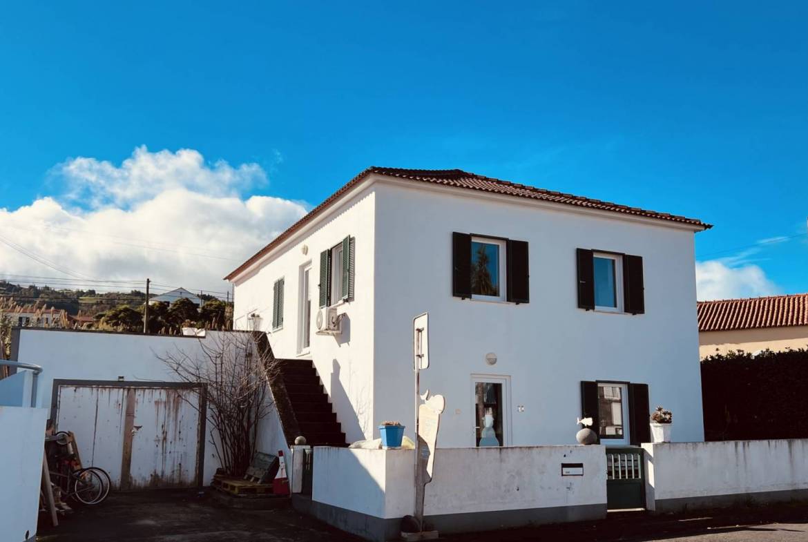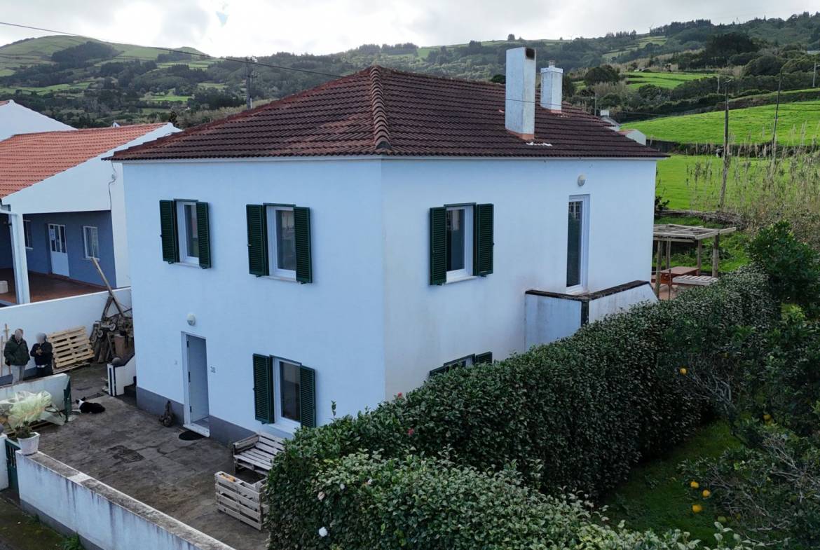 Temos o prazer de te oferecer esta bela propriedade com um grande e bem cuidado jardim e belas vistas sobre o oceano, na freguesia do Salão, ilha do Faial, Açores.