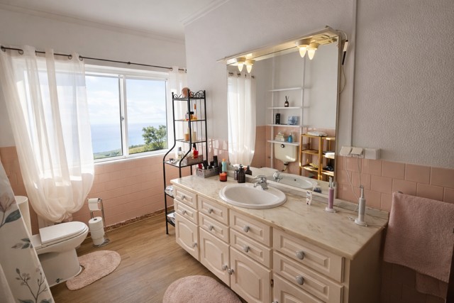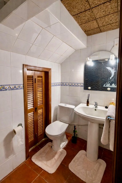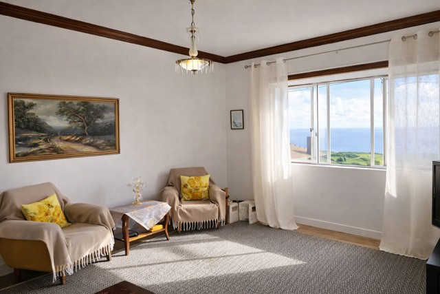 Esta é uma casa de 212,90m2 dividida em dois pisos. O interior está dividido em sala e cozinha em open space, 1 quarto, 1 casa de banho e uma garagem no rés do chão, com grandes janelas que proporcionam uma excelente luz natural. Esta divisão pode ser completamente independente do piso superior, ideal para arrendar, gerando a possibilidade de um rendimento extra. O acesso ao primeiro andar é feito por uma bonita escadaria de madeira onde encontramos um corredor que nos conduz à nossa direita pela casa de banho, o quarto principal, a cozinha e o segundo quarto com uma cama individual. À esquerda, temos uma sala de estar para que se sinta muito confortável e desfrute da vista para o mar e para a ilha de São Jorge através de várias janelas muito grandes.
